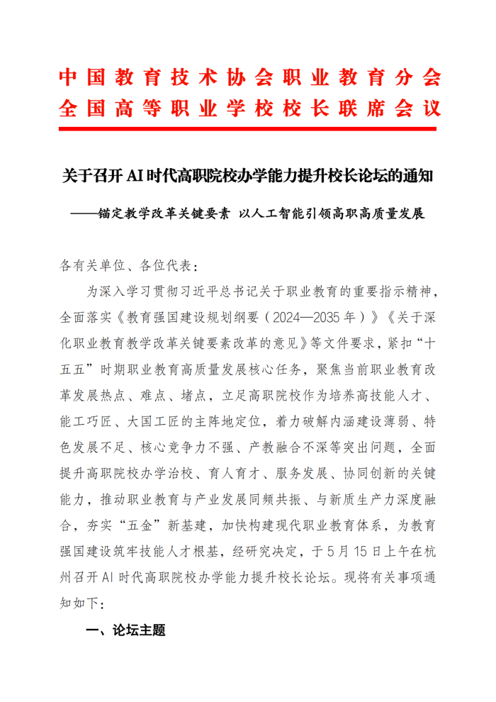 关于召开_AI_时代高职院校办学能力提升校长论坛的通知