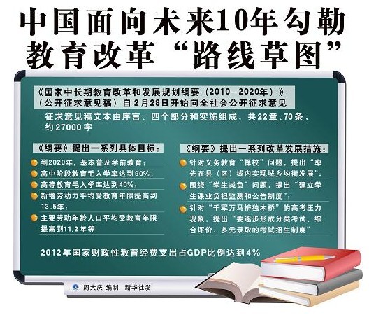 图表:中国面向未来10年勾勒教育改革“路线草图” 新华社发